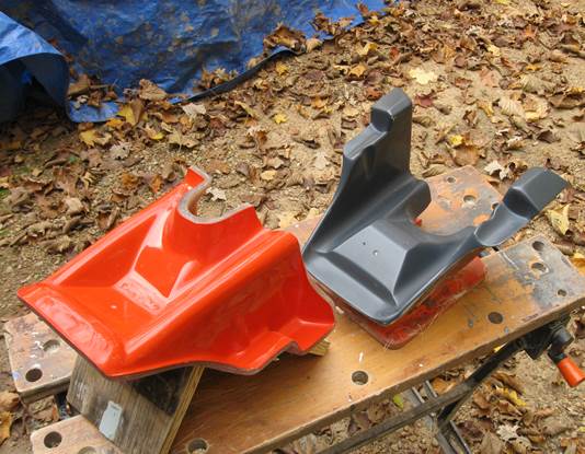 For those of you late to the news I’m making an XR rear tail to fit behind the 3 gallon Sportster tank. The project is almost done. The orange part you see here is the last piece of the puzzle--it’s the mold for the rear frame base/taillight holder/brake light mount for all Evos until 2003. As soon as I finish waxing it the glass guy will start making parts then I’ll know the cost. I am also going to make up a graphics kit for the tank and tail. The tank graphics will be like the original XR and you can order it as XR750, XR883, XR1000 or XR1200. More when I know more.