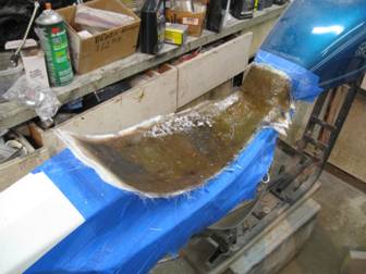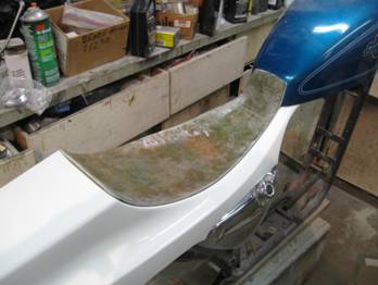 Here the fiberglass is cured and I’ve trimmed the shape edge I want.